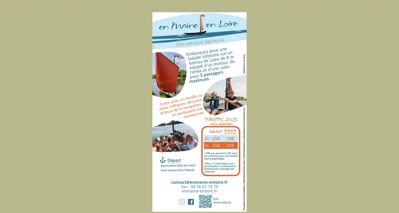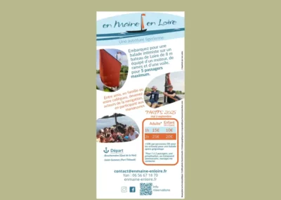 En Maine en Loire propose des balades intimiste sur la Maine et la Loire. Création de toute l’identité visuelle, du flyer et du site web.